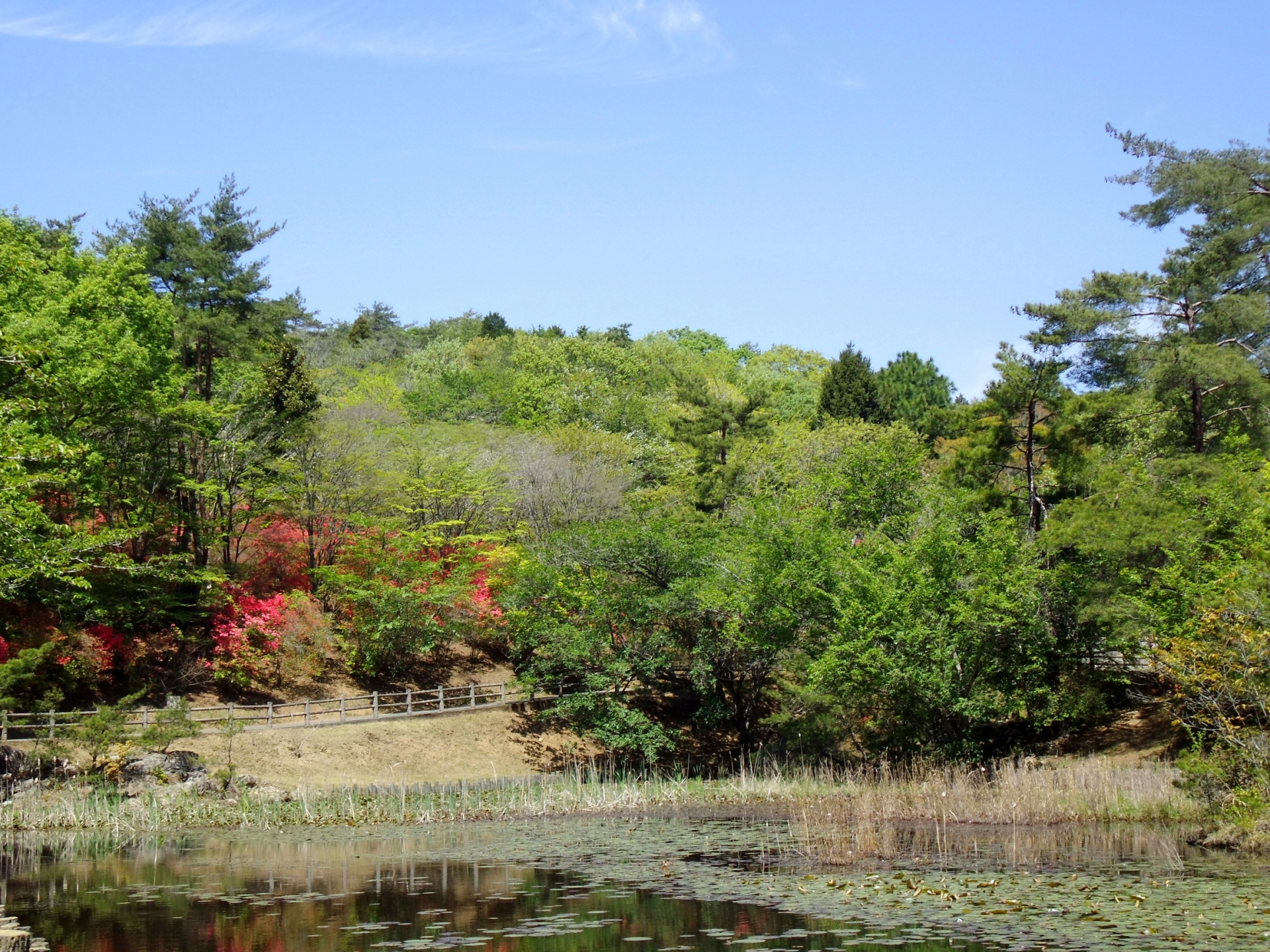総面積59ヘクタールという広大な敷地には、スイレンが咲く池やアカマツの林、ナラ・クヌギの雑木林が広がり、四季折々の美しい自然を満喫できます。