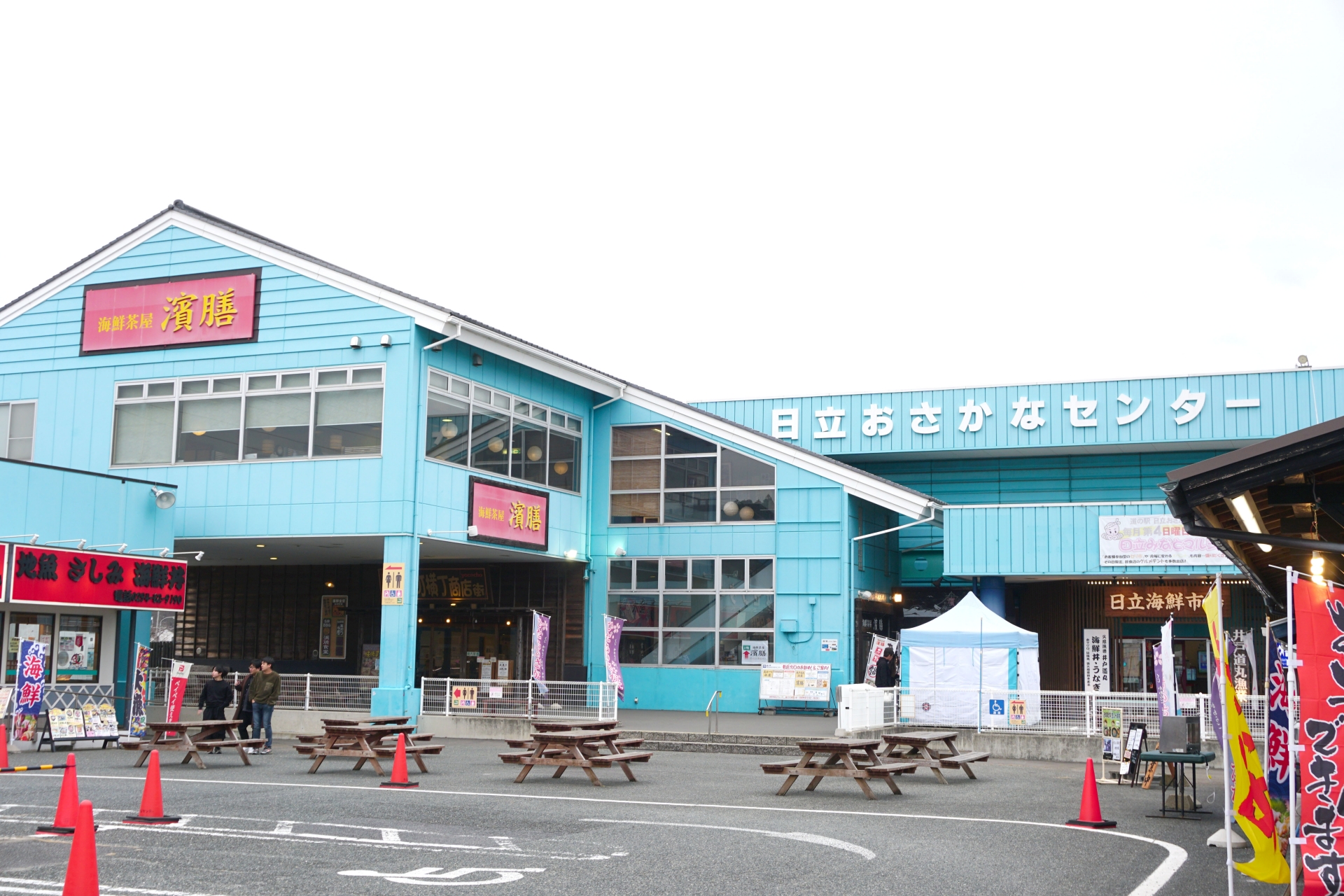 日立おさかなセンターでは、地元で水揚げされた新鮮な魚介をその場で焼いて食べられる 「七輪村」が人気!