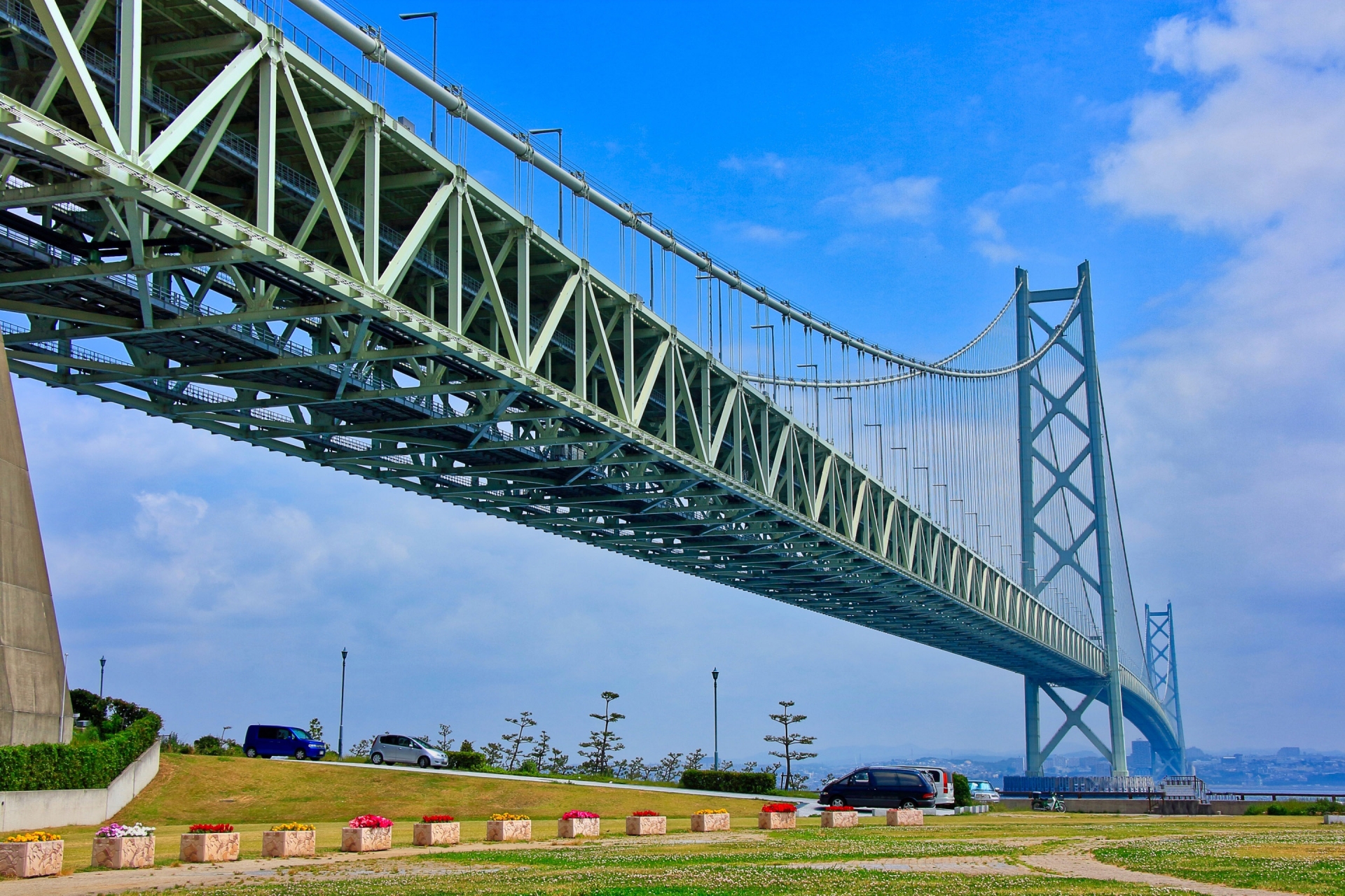 目の前に明石海峡大橋がそびえ立ち、橋を真下から眺められるダイナミックな景色は圧巻です。