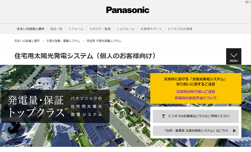 太陽光発電で信頼と実績を持つパナソニック。40年以上の歴史を誇り、パネルからパワーコンディショナーまで、すべて自社製品です。