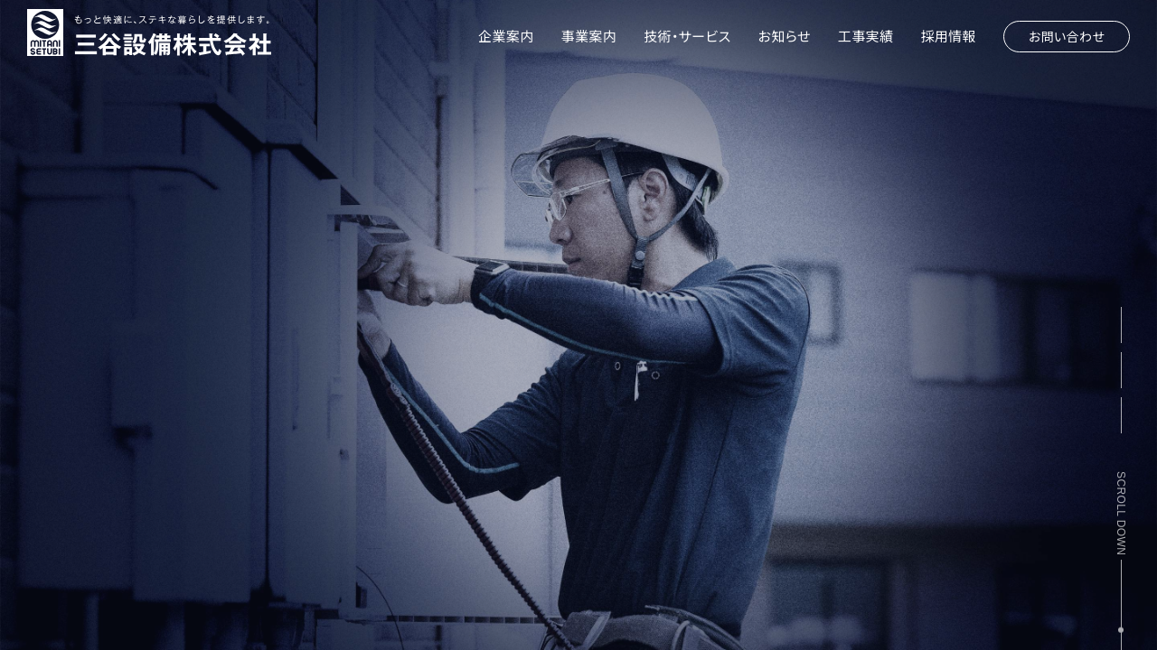 三谷設備株式会社三谷設備株式会社は、福井県福井市に拠点を置く、空調換気設備、給排水衛生設備、電気通信設備の設計・施工を行う会社です。