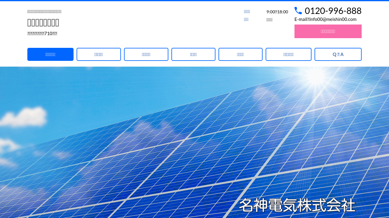 名神電気株式会社名神電気株式会社は、滋賀県で太陽光発電システムとオール電化の販売・施工を行う会社です。
