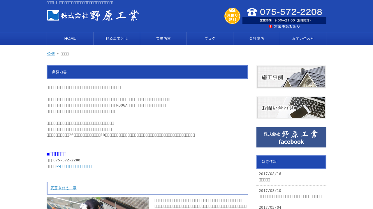 株式会社野原工業株式会社野原工業は、京都市伏見区で長年屋根工事に携わってきた実績を持つ会社です。