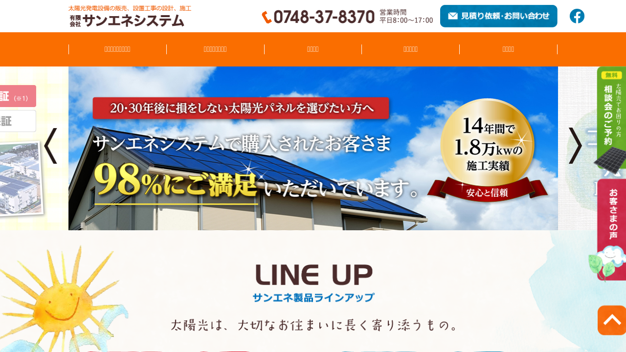 有限会社サンエネシステム有限会社サンエネシステムは、滋賀県で太陽光発電システムの販売・施工を行う会社です。