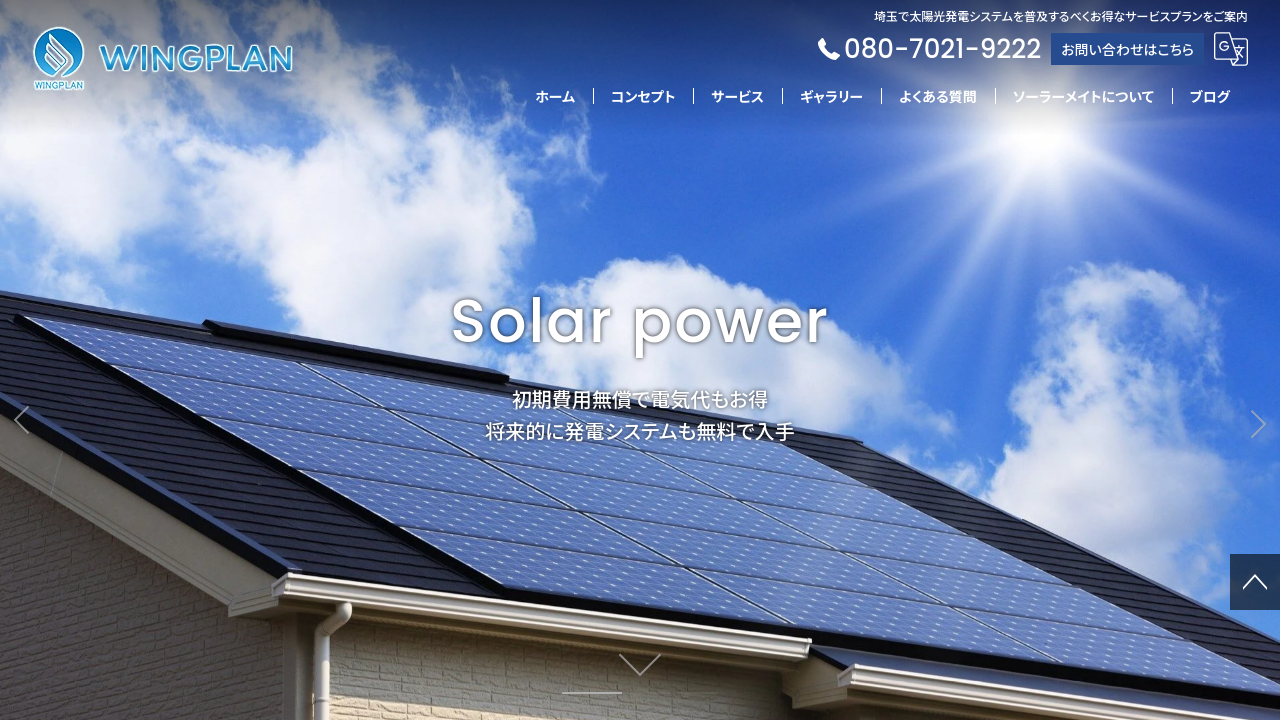 WINGPLANWINGPLANは、埼玉県で太陽光発電システムの普及を目指し、地域密着型のサービスを提供している会社です。