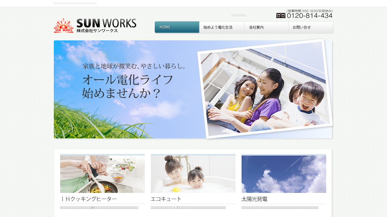 株式会社サンワークス株式会社サンワークスは、福島県郡山市で太陽光発電、IH、エコキュート、オール電化の販売・施工を行う会社です。
