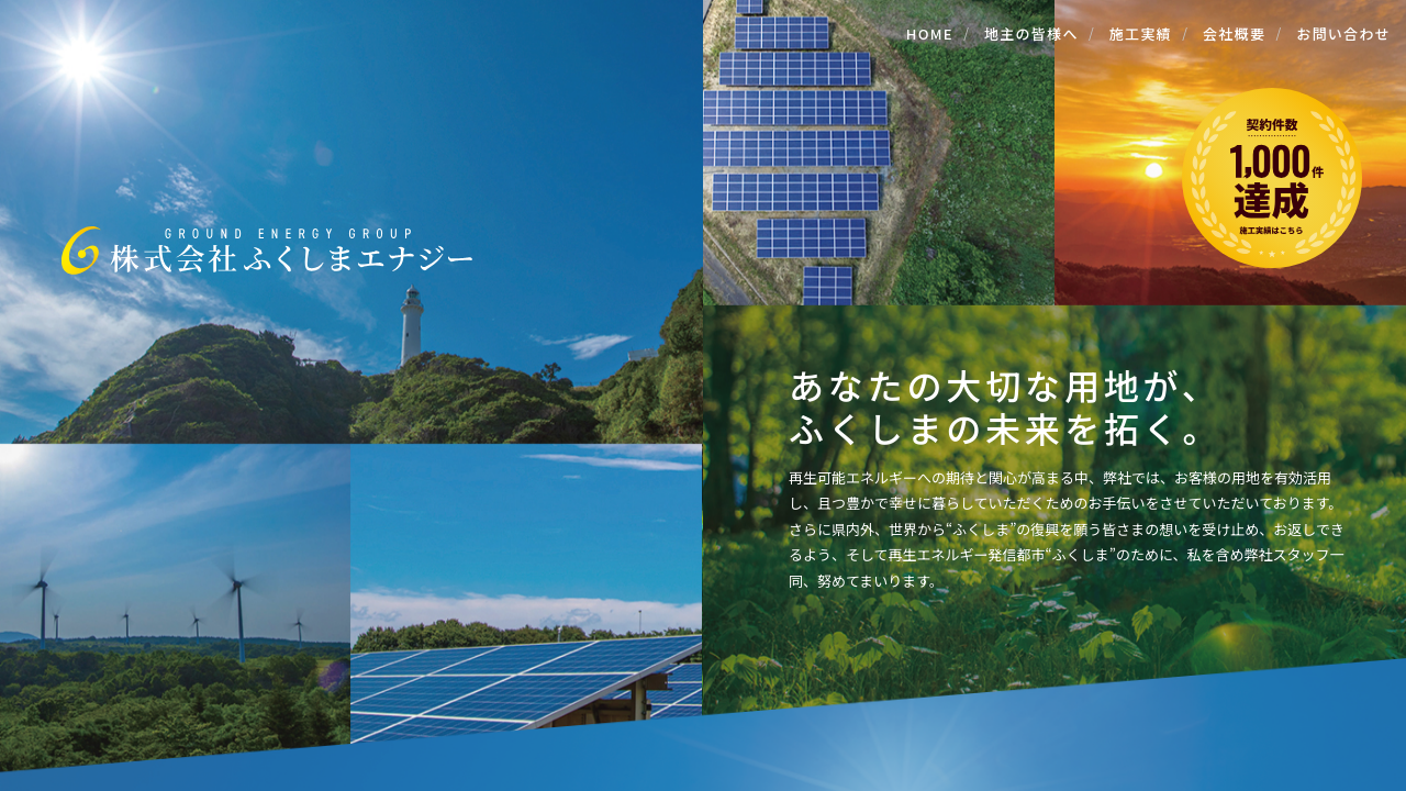 「福島県のエネルギーを、100%自然の力でつくる。」を理念に、太陽光、風力、水力など、自然の力を活用した発電事業に力を入れています。