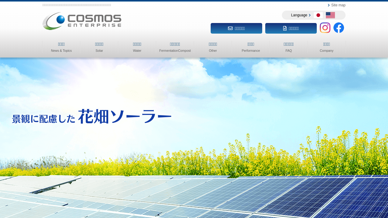 株式会社コスモスエンタープライズ株式会社コスモスエンタープライズは、太陽光発電、ナノバブル水素水、発酵堆肥の製造販売を行う企業です。