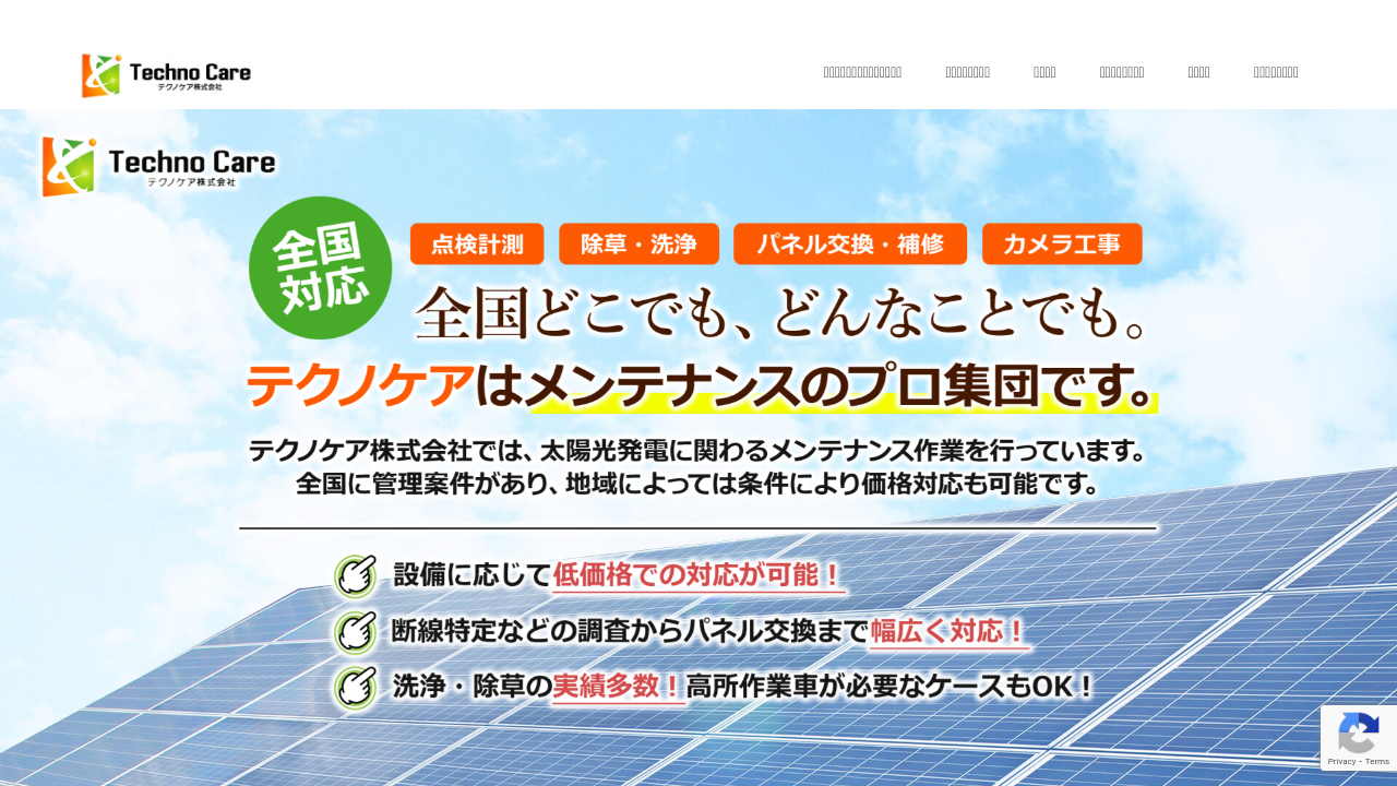 テクノケア株式会社テクノケア株式会社は、太陽光発電設備の保守メンテナンスを専門とする会社です。