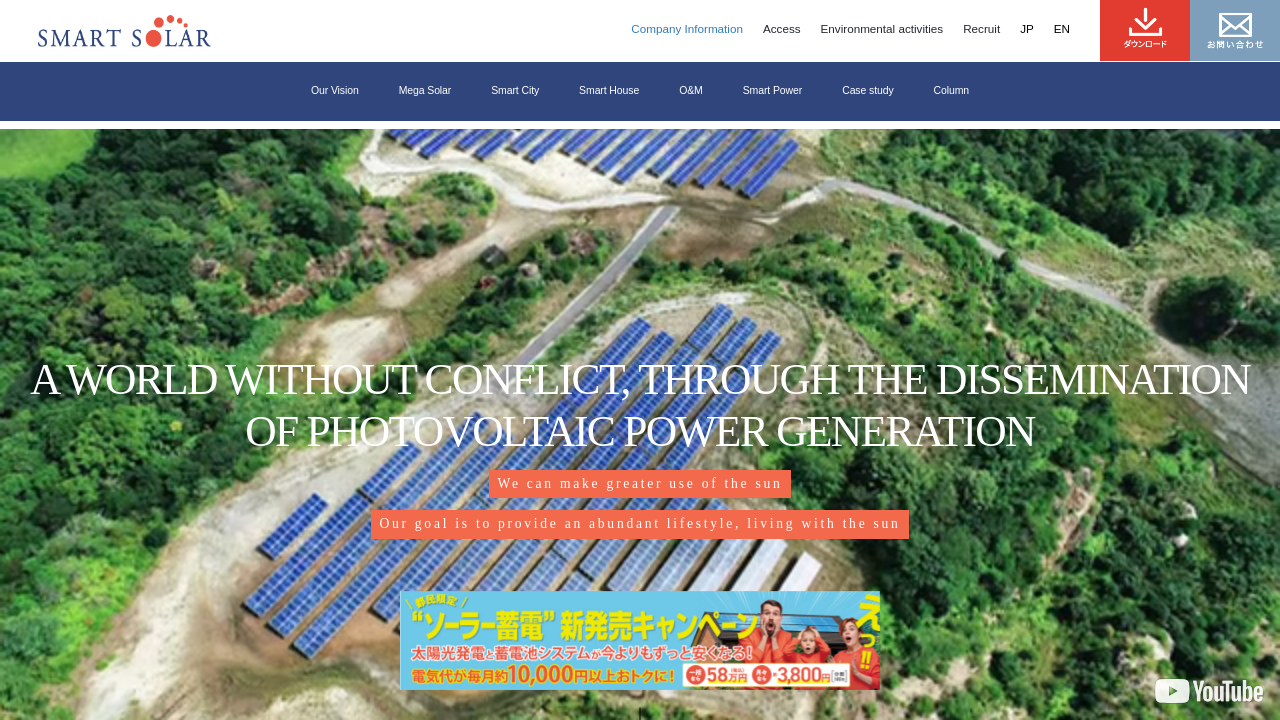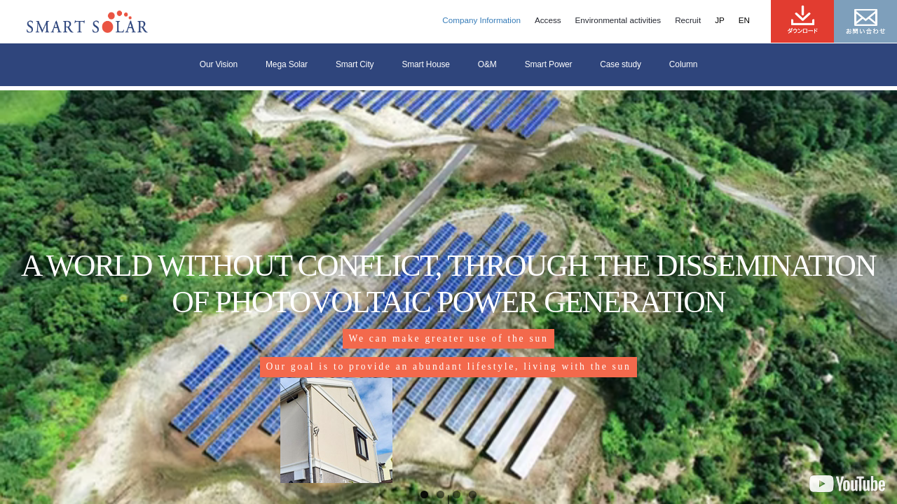 スマートソーラー㈱スマートソーラー株式会社は、国内外でメガソーラー事業を展開する、総合的な太陽光発電事業会社です。