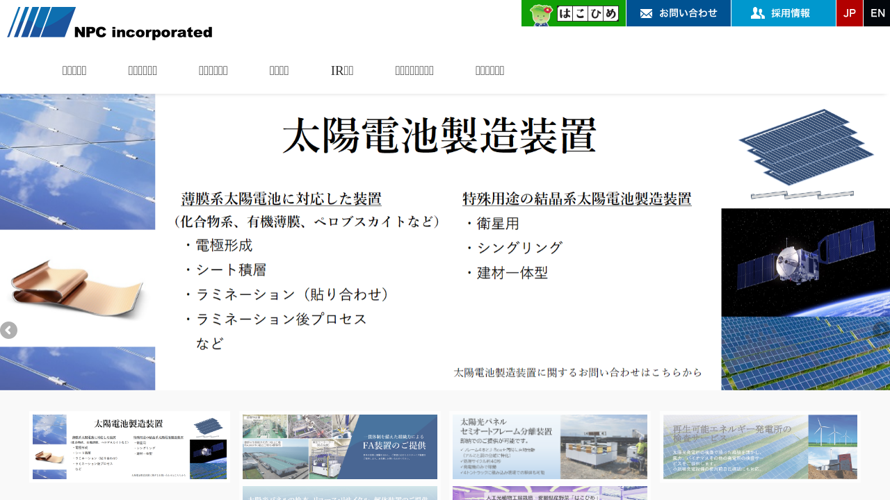 株式会社エヌ・ピー・シー株式会社エヌ・ピー・シーは、太陽電池業界で培った技術力と応用力で、多様な業界へ貢献している企業です。
