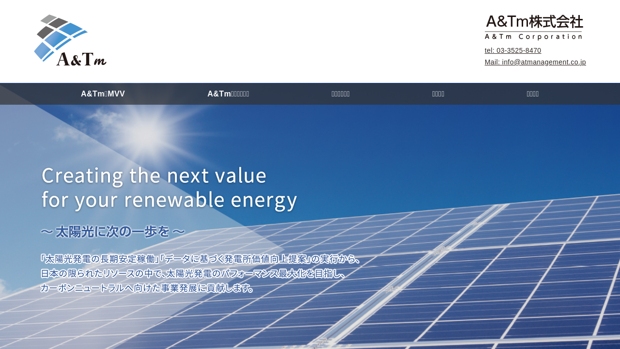 A&Tm株式会社A&Tm株式会社は、太陽光発電事業の効率的な事業管理および収益向上を支援する会社です。
