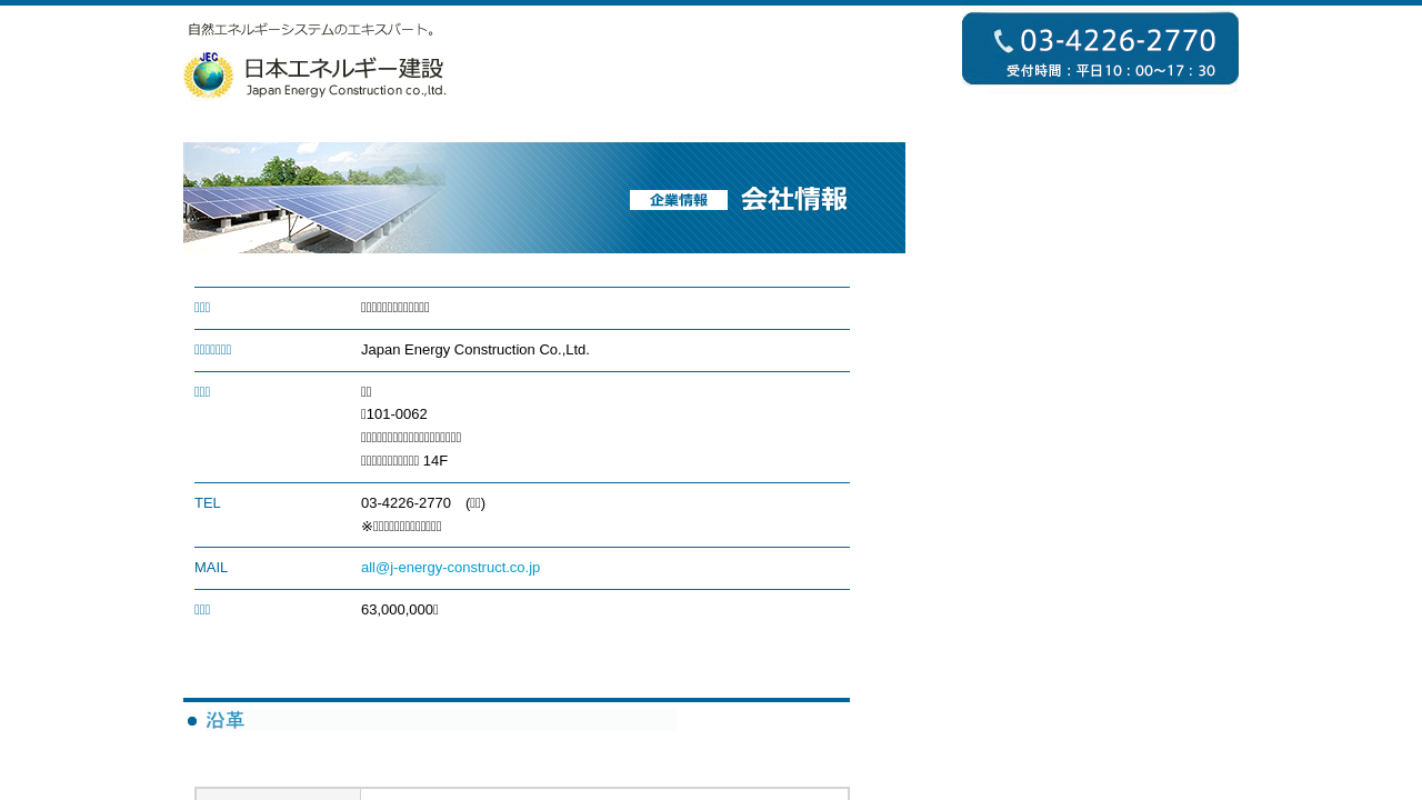 日本エネルギー建設株式会社日本エネルギー建設株式会社は、2012年4月に設立された自然エネルギーシステムのエキスパートです。