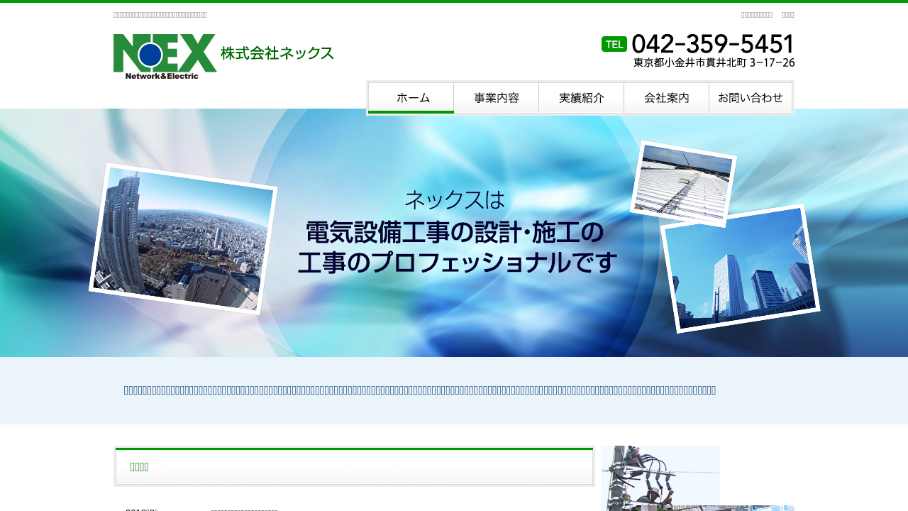 株式会社ネックス株式会社ネックスは、東京都小金井市に拠点を置く電気設備工事会社です。