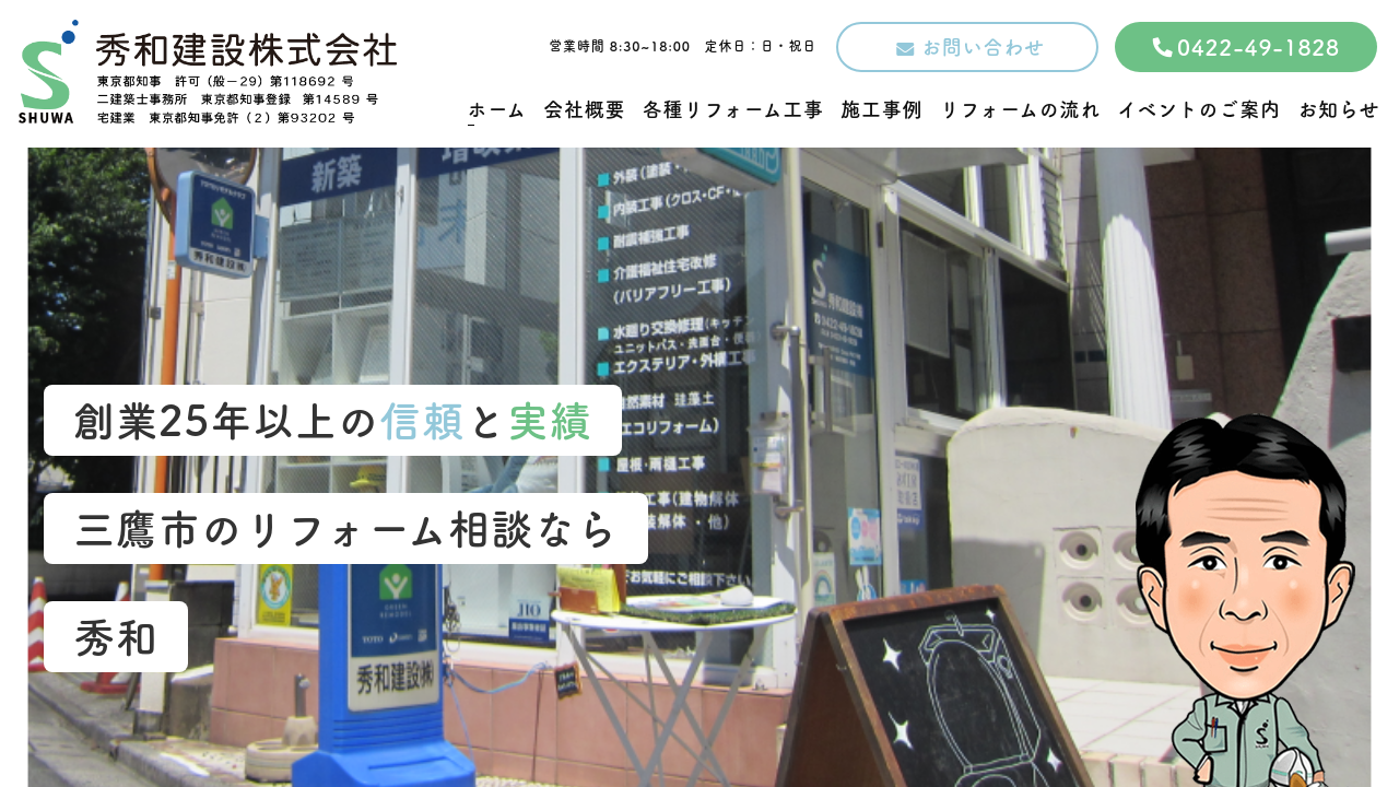 三鷹市でリフォームをお考えなら、ぜひ秀和建設株式会社にご相談ください。