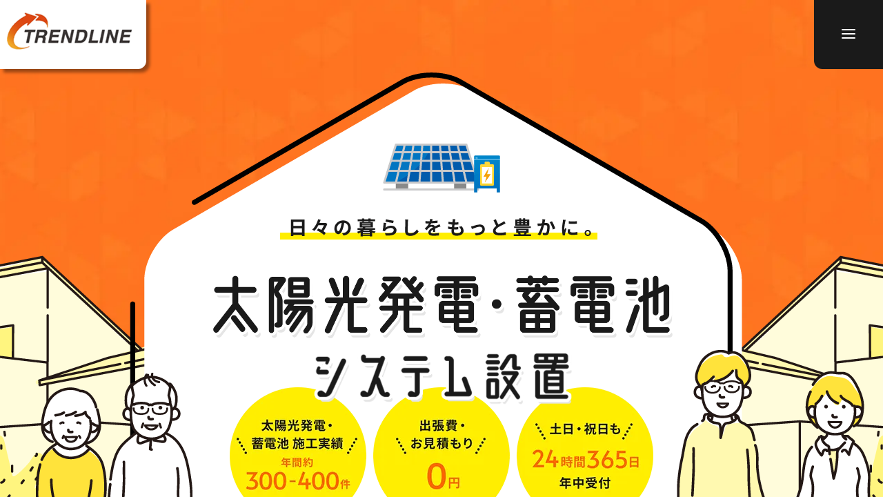 株式会社TREND LINE株式会社TREND LINEは、太陽光発電・蓄電池システムの販売・施工・メンテナンスを一貫して行う会社です。