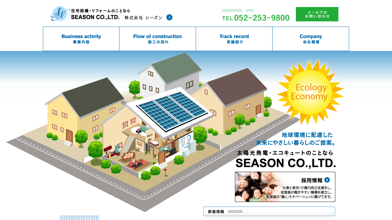 株式会社シーズン株式会社シーズンは、愛知県名古屋市に拠点を置く、リフォーム、エコキュート、太陽光発電、LPガス、蓄電池、オール電化など、幅広い分野を網羅した総合的な住宅設備会社です。