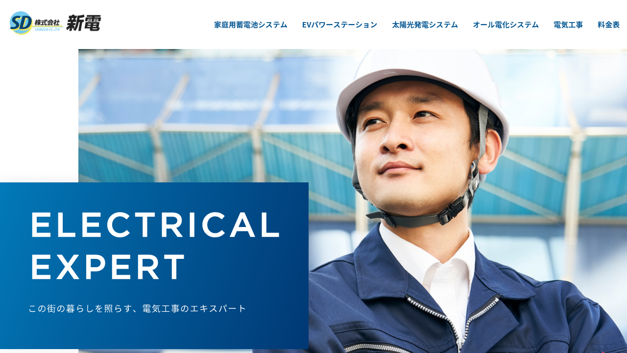 株式会社 新電株式会社 新電は、山口県防府市に拠点を構え、山口県内を中心に家庭用蓄電池システムやEVパワー・ステーション(SmartV2H)、太陽光発電・オール電化など住まいにまつわる電気工事全般を行っている会社です。