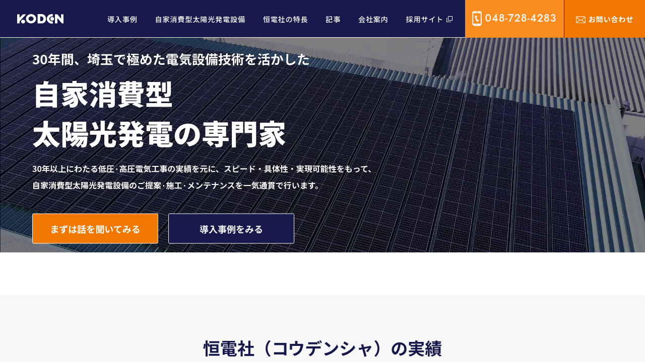 株式会社恒電社株式会社恒電社は、埼玉で30年以上の実績を持つ電気設備工事の専門家集団です。