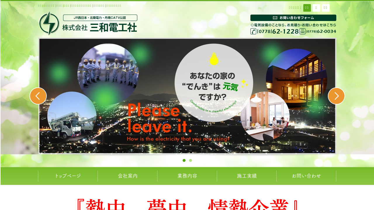 株式会社三和電工社株式会社三和電工社は、福井県鯖江市に拠点を置く、電気設備工事の専門会社です。