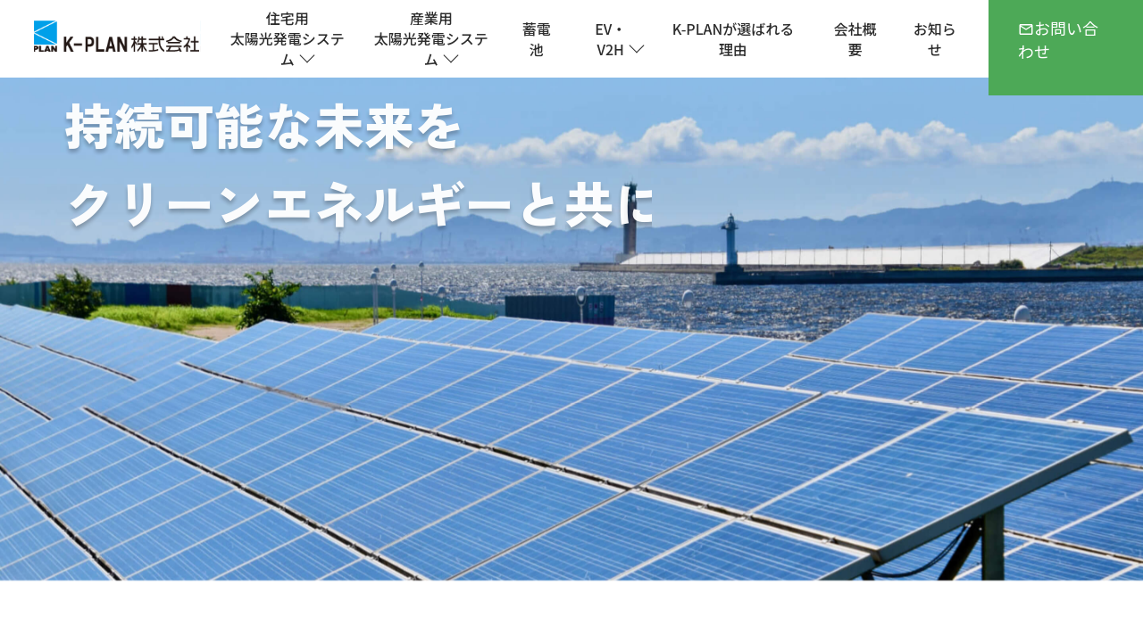 K-PLAN株式会社K-PLAN株式会社は、太陽光発電システムの専門会社として、販売から施工、メンテナンスまでを一貫して行っています。