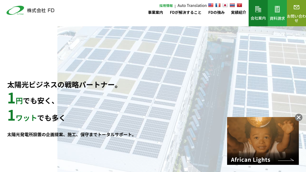 株式会社 FD株式会社 FD は、太陽光発電を中心としたグリーンエネルギーの創出に特化した企業です。