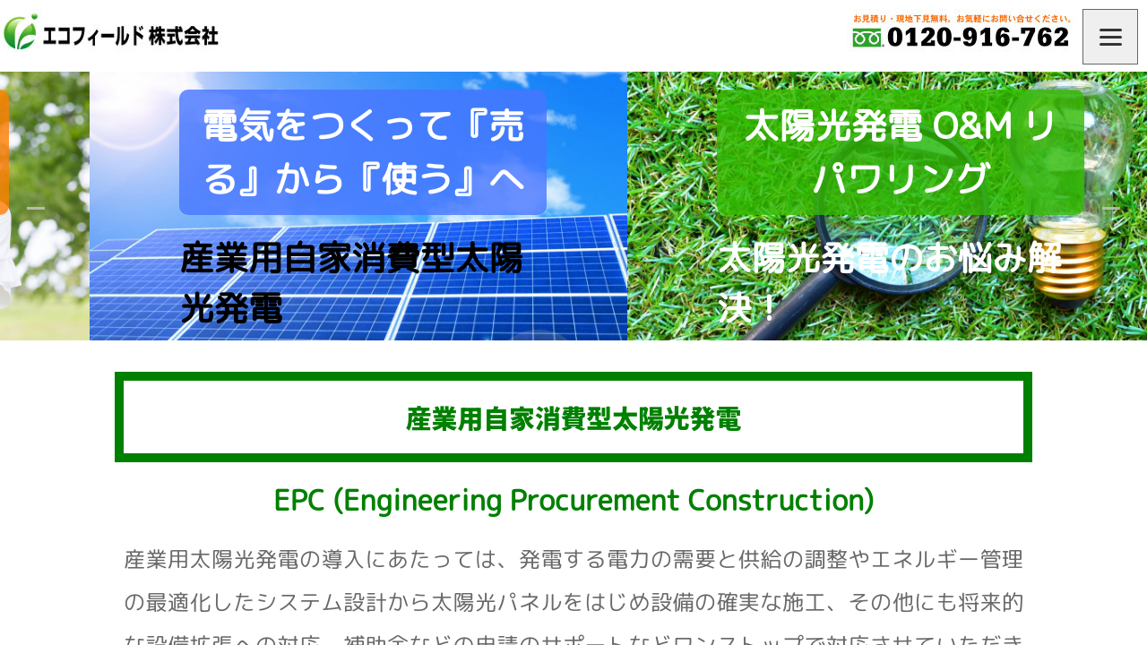 エコフィールド株式会社エコフィールド株式会社は、栃木県小山市に拠点を置く、産業用自家消費型太陽光発電の専門企業です。