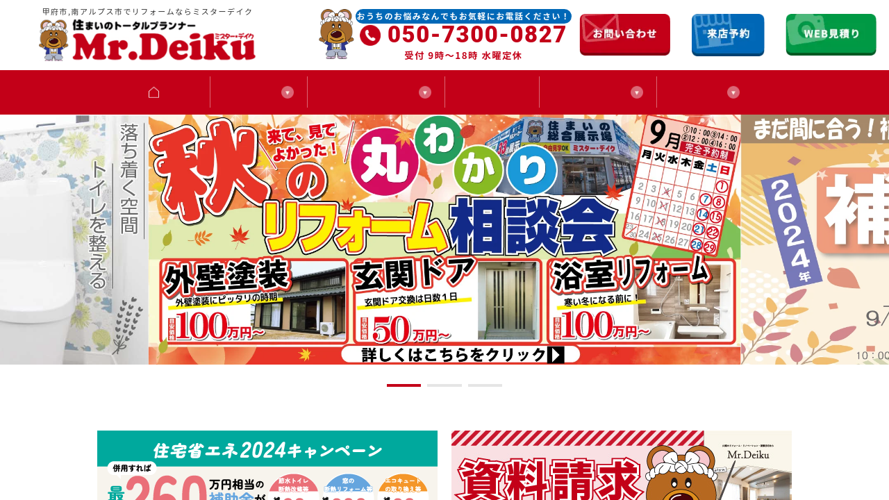 リフォームをお考えなら、ぜひミスターデイク株式会社 甲府東店にご相談ください。