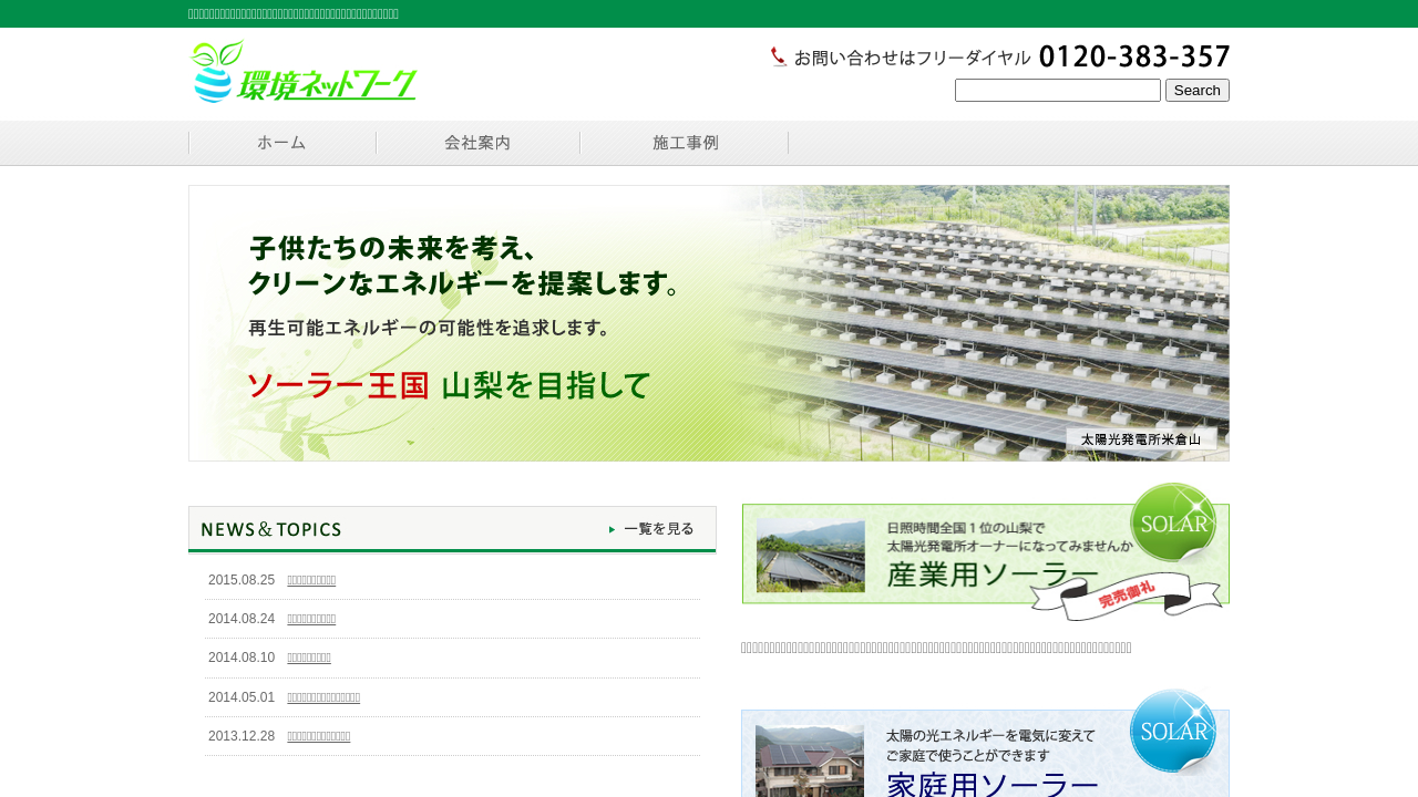 株式会社環境ネットワーク株式会社環境ネットワークは、山梨県で太陽光発電システムの施工販売を行う会社です。
