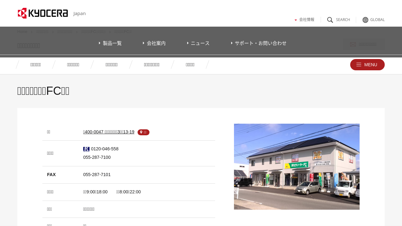 京セラソーラーFC甲斐京セラソーラーFC甲斐は、山梨県甲府市にある太陽光発電と蓄電池の販売・施工を行うショールームです。