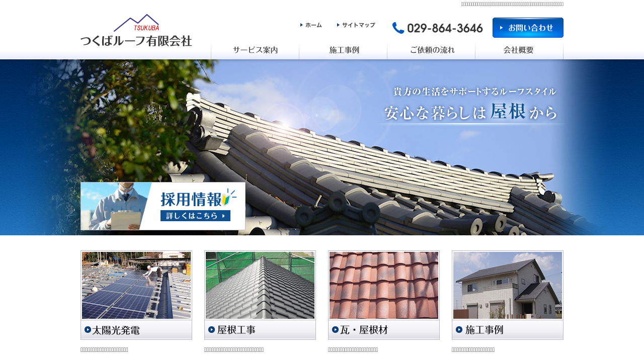 つくばルーフ有限会社つくばルーフ有限会社は、茨城県・千葉県北部を中心に、瓦卸売・屋根工事・太陽光施工を手掛ける会社です。
