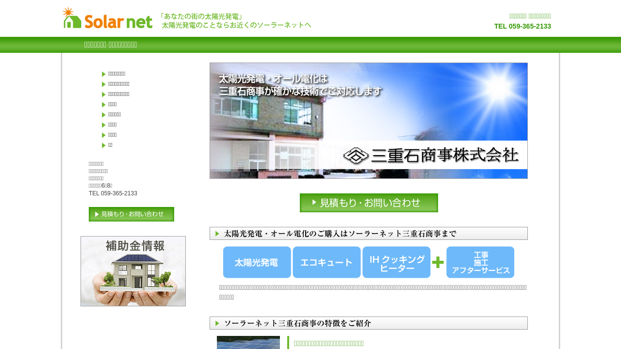 三重石商事株式会社三重石商事株式会社は、太陽光発電とオール電化の販売・施工・アフターサービスを自社で一貫して行っている会社です。