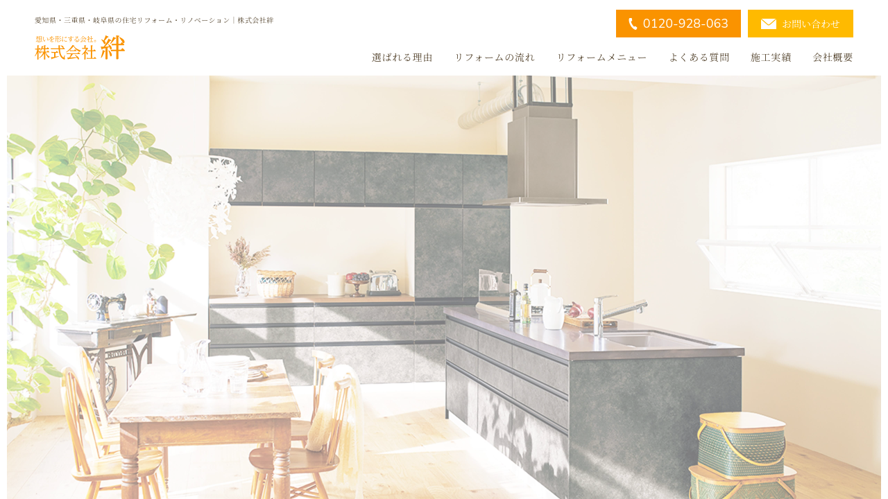 株式会社 絆株式会社絆は、愛知県・三重県・岐阜県で住宅のリフォーム・リノベーションを手掛ける会社です。