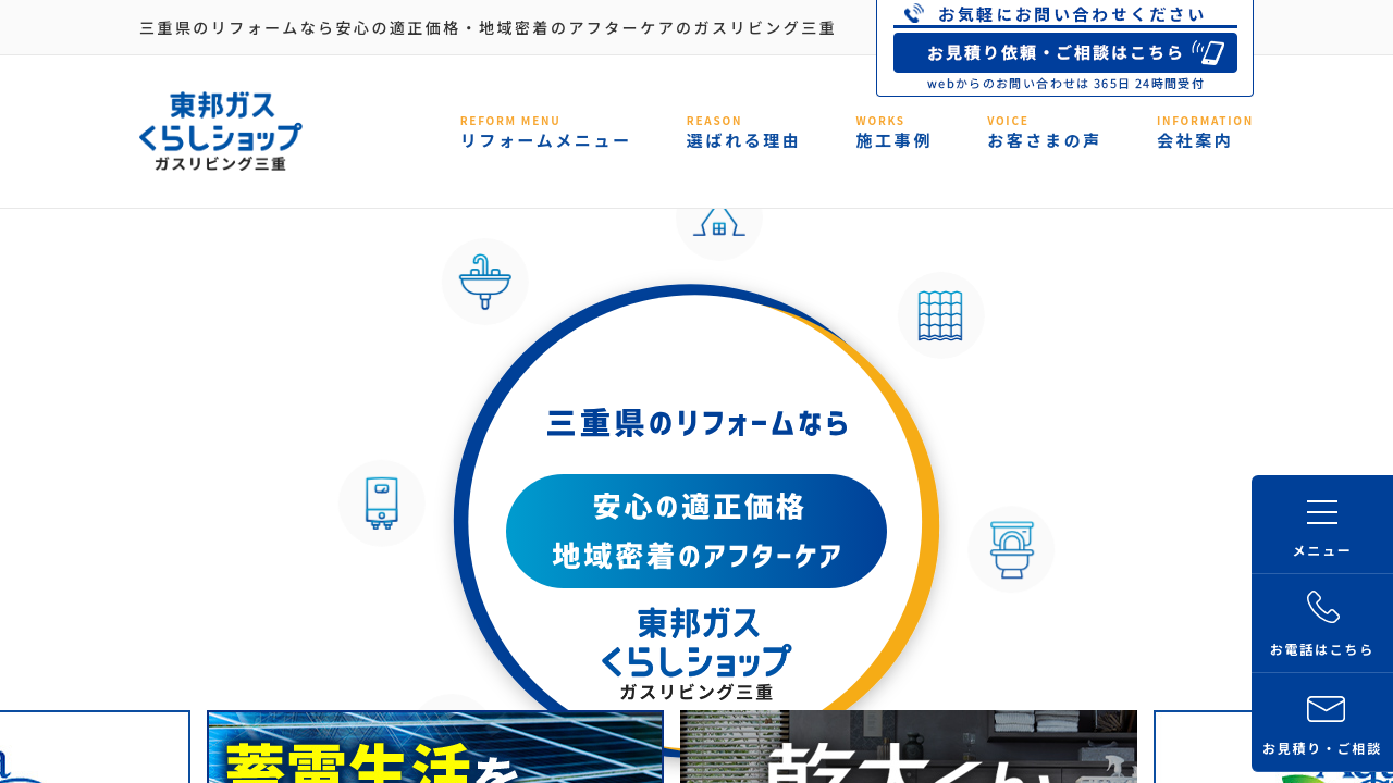 株式会社 ガスリビング三重株式会社 ガスリビング三重 は、三重県四日市市、津市、松阪市を中心に、地域密着型のリフォーム会社として、多くのお客様から支持を得ています。長年の実績と信頼に基づき、キッチンや浴室、トイレなどの水回りリフォームから、外壁塗装、屋根修理、エクステリアまで幅広いリフォームに対応しています。