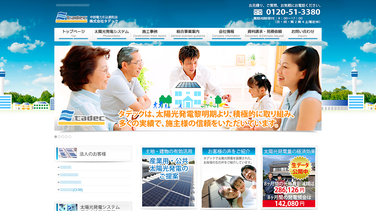 株式会社タデック株式会社タデックは、愛知県常滑市に拠点を置く電気設備専門の総合工事会社です。