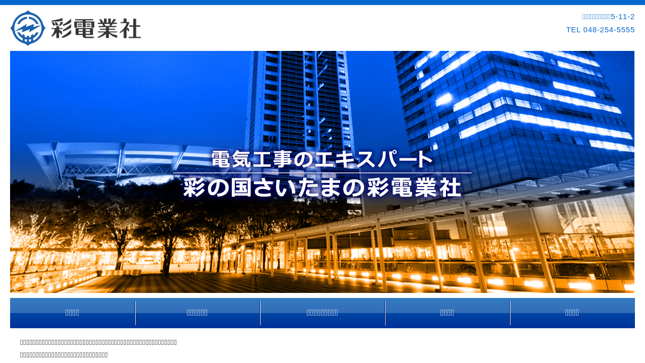 埼玉県を主な営業エリアとする株式会社彩電業社は、電気設備工事、太陽光発電設備工事、修繕工事のエキスパートです。創業から27年、官公庁施設や教育施設、工場・商業施設・事務所など、数多くの電気設備工事を手掛けてきました。