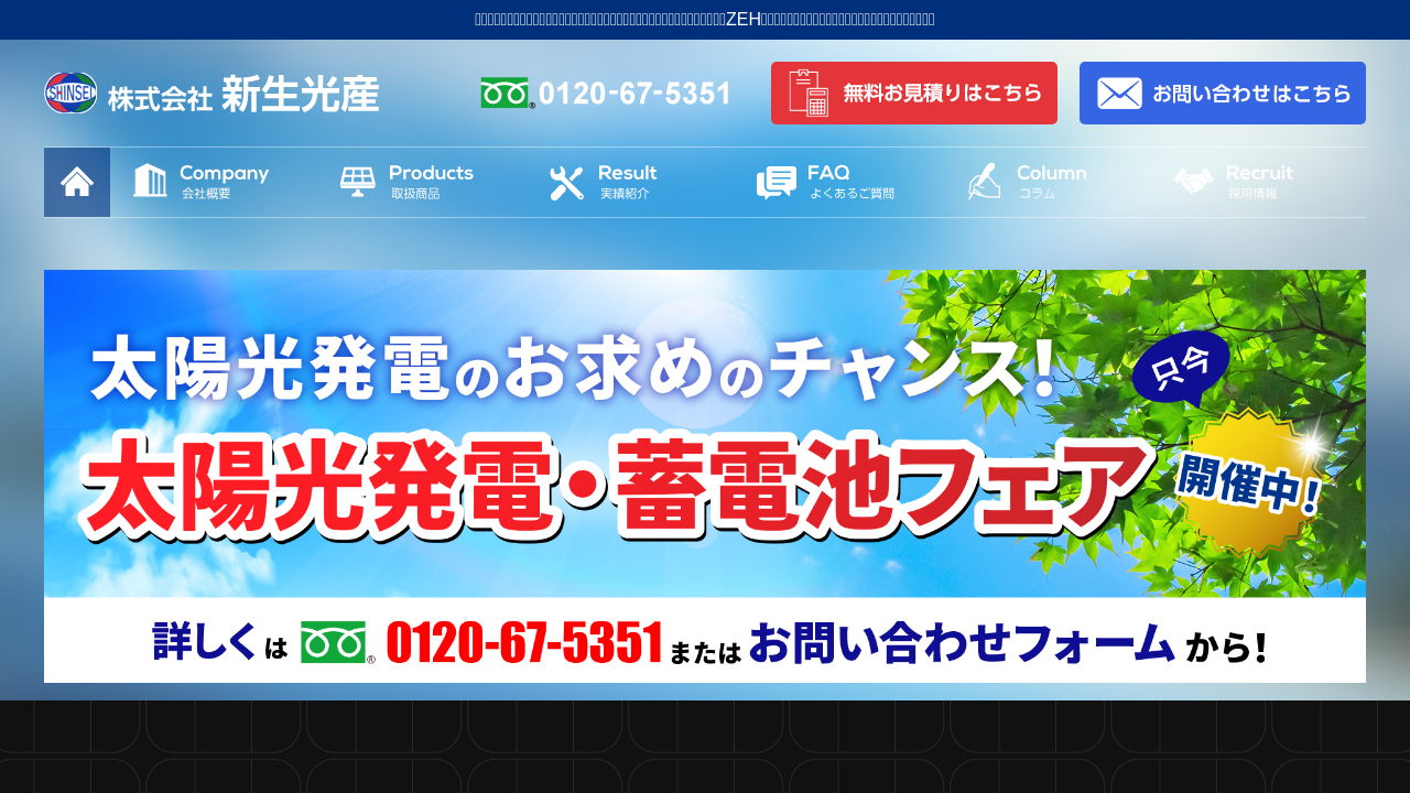 株式会社新生光産 徳島本社株式会社新生光産 徳島本社は、徳島県、香川県、高知県で太陽光発電と蓄電池の販売・施工を行う会社です。