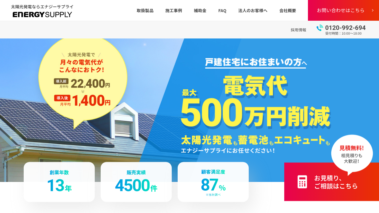 エナジーサプライ株式会社 香川支店エナジーサプライ株式会社 香川支店は、地域密着型の太陽光発電システム販売会社です。