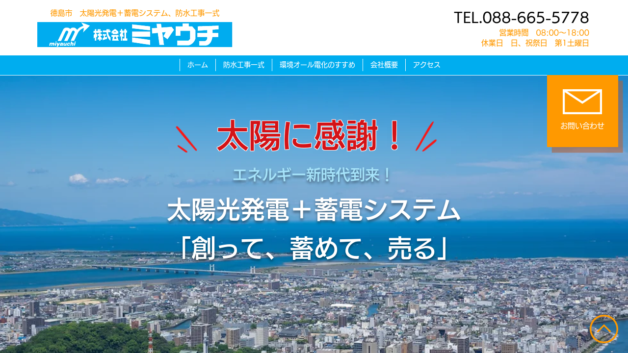 株式会社ミヤウチ株式会社ミヤウチは、徳島市で太陽光発電・蓄電システムの販売・施工を手掛ける会社です。