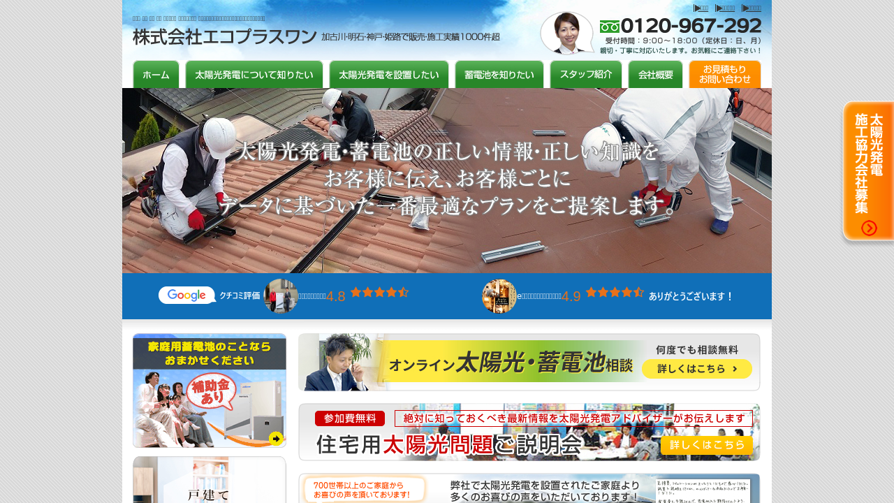 株式会社エコプラスワンは、お客様に正確な情報と知識を提供することに力を入れています。カタログに頼った提案ではなく、近隣設置例の実測データに基づいたシミュレーションや、独自の分析結果に基づいたプランをご提案することで、お客様にとって最適な太陽光発電システムをご提案しています。