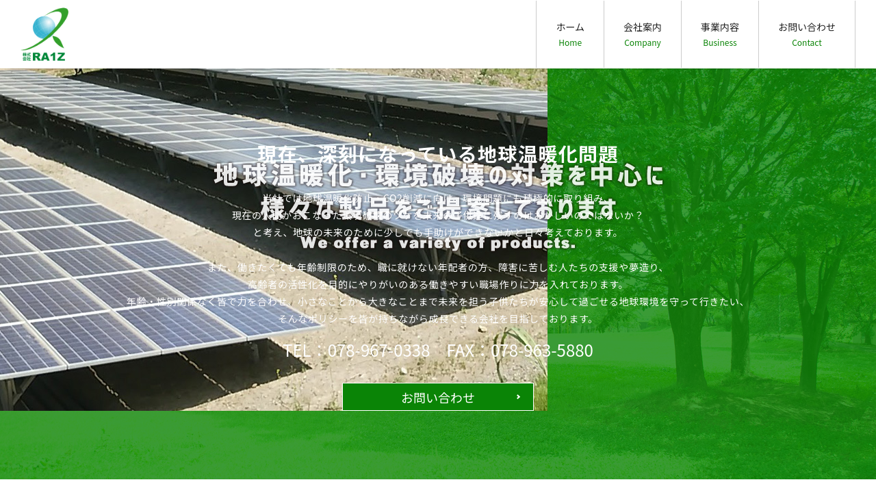 株式会社RA1Z株式会社RA1Zは、地球環境への配慮を第一に考え、太陽光発電をはじめとする環境に優しい事業を展開している会社です。