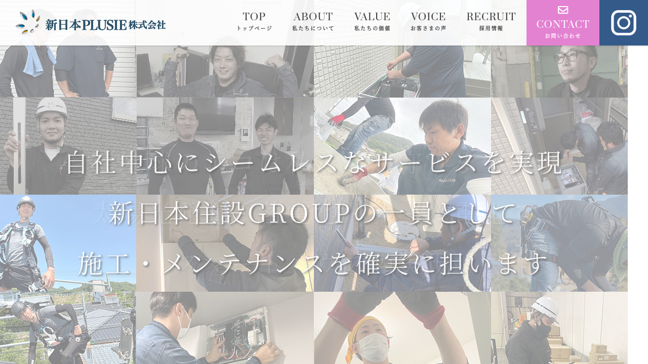新日本PLUSIE株式会社新日本PLUSIE株式会社は、お客様に喜んでいただける施工をご提供するため、高品質で低コストの工事を徹底するなど、真摯に日々の業務に取り組んでいます。