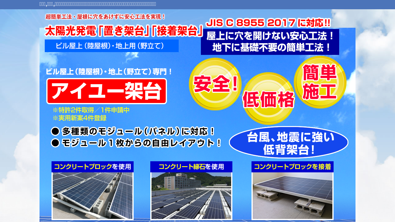 アイユーソーラー株式会社アイユーソーラー株式会社は、太陽光発電システムの設計・施工・販売を行う会社です。