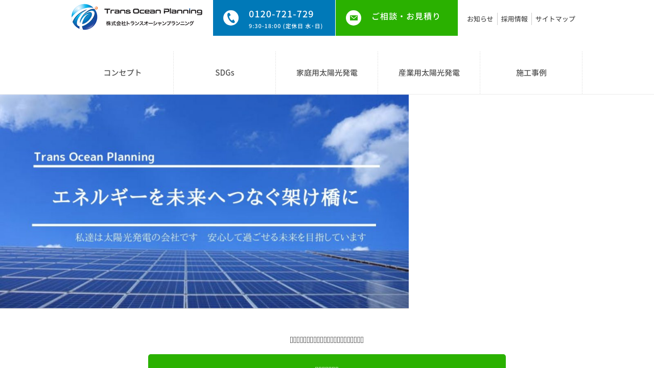 株式会社トランスオーシャンプランニング株式会社トランスオーシャンプランニングは、太陽光発電システムの販売・施工・メンテナンスをトータルにサポートする会社です。