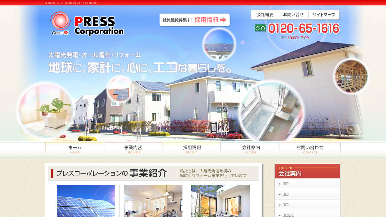 株式会社プレスコーポレーションは、神戸市を拠点に、太陽光発電、オール電化、リフォームを専門とする会社です。