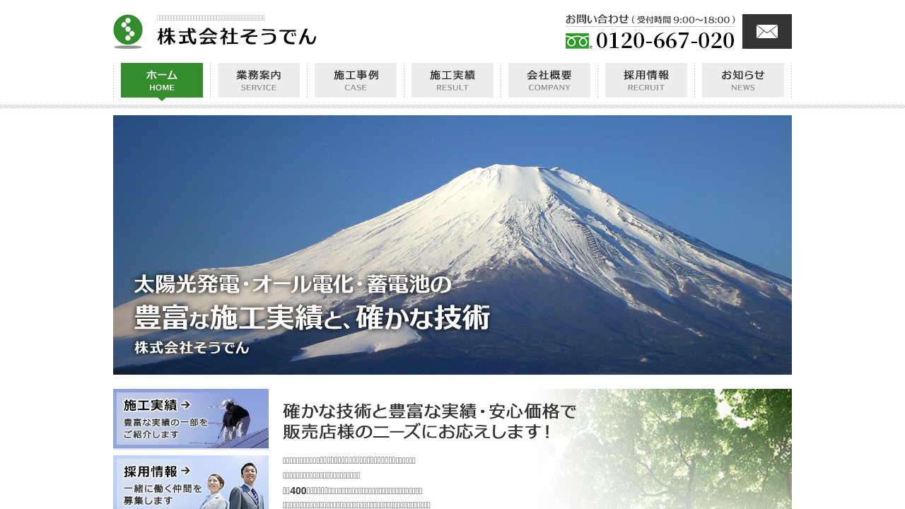 株式会社そうでん株式会社そうでんは、太陽光発電・オール電化・蓄電池の施工と販売を専門とする会社です。