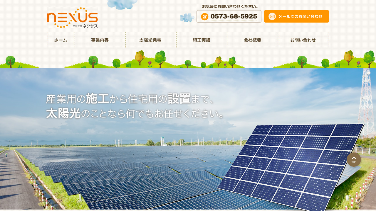 合同会社ネクサス合同会社ネクサスは、岐阜県中津川市で太陽光発電システムの販売・施工・メンテナンスを行う会社です。