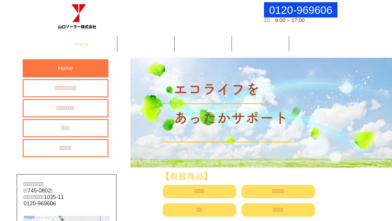 山口ソーラー株式会社山口ソーラー株式会社は、太陽光発電システム、エコキュート、電気温水器、オール電化機器など、暮らしのエネルギーに関する幅広い商品を取り扱っている点が大きな特徴です。