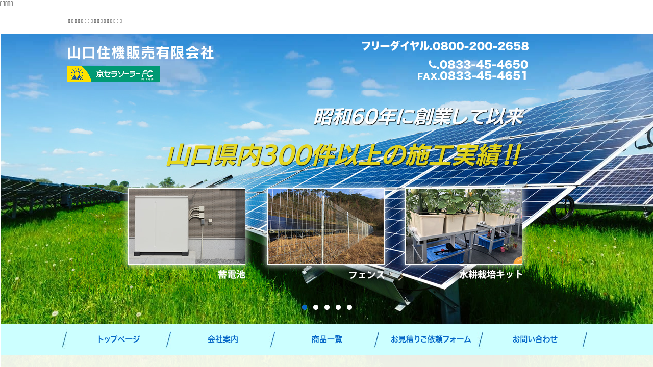 山口住機販売有限会社山口住機販売有限会社は、昭和60年の創業以来、山口県内で300件以上の太陽光発電システムの施工実績を誇る会社です。
