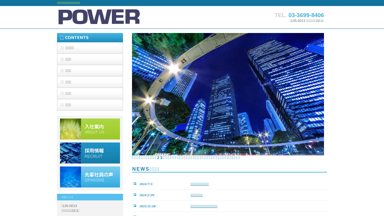 株式会社パワー株式会社パワーは、都内23区の官公庁施設を手掛ける電気設備工事・空調設備工事のプロ集団です。